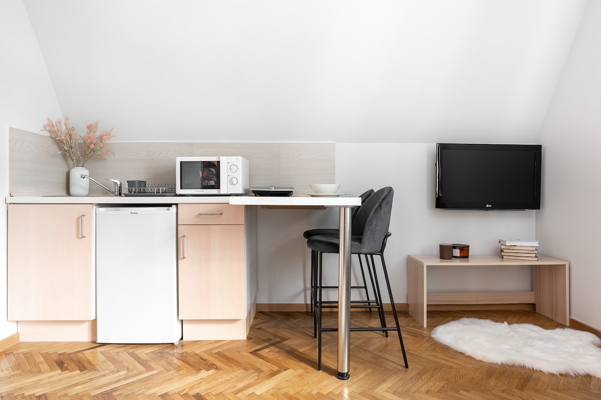 House’27– an exceptional villa where history and modernity create unique atmosphere. Our 'Cozy' apartment is a perfect choice for one or 2 people. Garden surrounding the villa, as well as parking places guarantee comfort and privacy to our guests. If you fancy comfortable interior and would like to have all Zakopane highlights just around the corner – go ahead and book your apartment in House’27. There’s no place like this in the heart of Zakopane, close to famous Krupówki street.