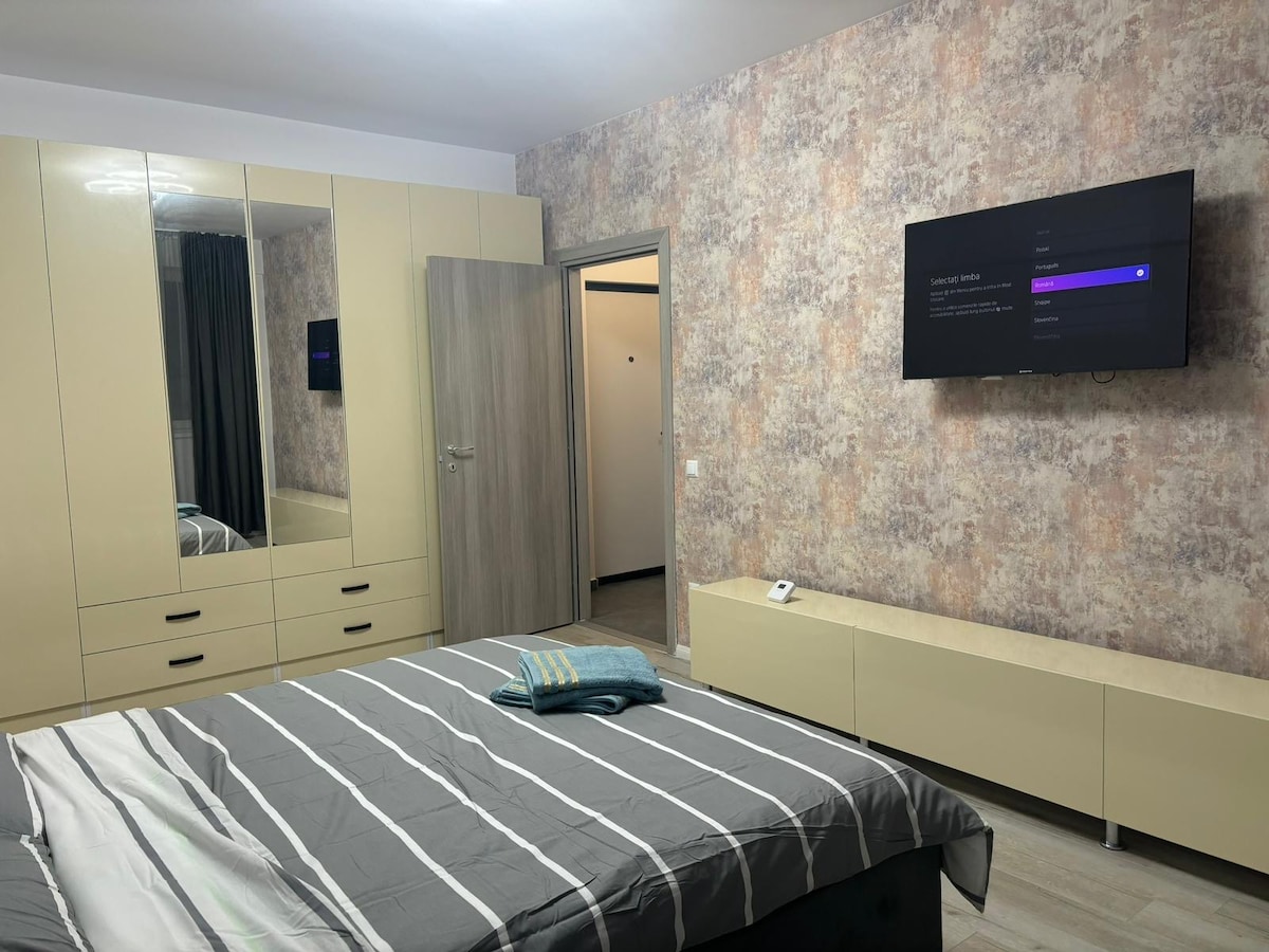 Elegant apartment in the heart of Craiova, where modern comfort meets urban refinement. Spacious living area, cozy bedroom, two immaculate bathrooms, and a fully equipped kitchen. Fast Wi-Fi, air conditioning, and independent check-in. Perfect for guests seeking style, a prime location, and a premium stay in the city.