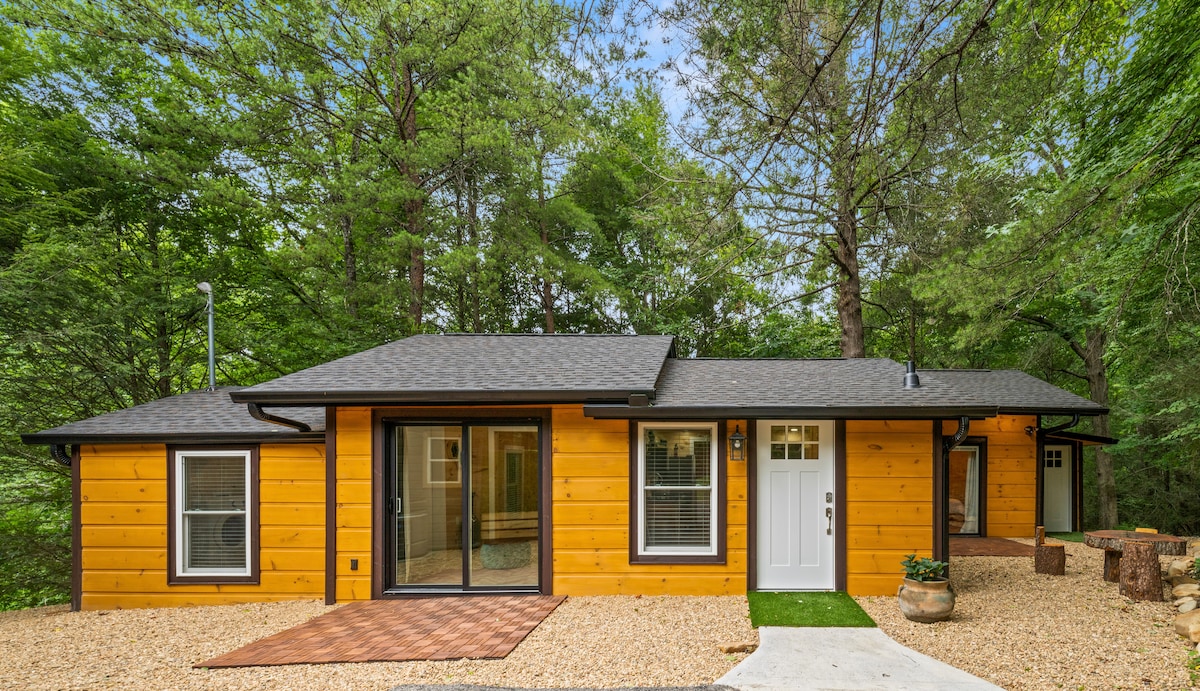 ✅Hot Tub ✅Mountain views ✅Firepit (propane provided) ✅Electric Fireplace ✅Wet room (large soaker tub and shower) ✅Blackstone Grill (propane provided) ✅Large covered porch w/outdoor dining ✅Brand New Modern-Compact Cabin (600 sq ft) ✅ Private Gated Communityw/Security ✅ Community Pool (seasonal), Tennis Courts, Pickleball Court & Playground! ✅1 Bedroom (King Bed)/1 Bath w/sofa bed (queen) ✅Washer/Dryer, Dishwasher, Oven, and Fridge! ✅Vintage board games ✅Cornhole Boards ✅ Record Player