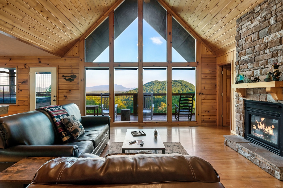 Located in the heart of Smoky Mountains, our cabin boasts a secluded setting, surrounded by lush green forests, towering trees, and panoramic mountain vistas. Featuring a hot tub, game and theatre room, you will always have something to do! As you step inside, you'll be greeted by a warm and inviting atmosphere. The living area is adorned with plush sofas and a stone fireplace for evenings spent curled up with a book or enjoying lively conversations with loved ones