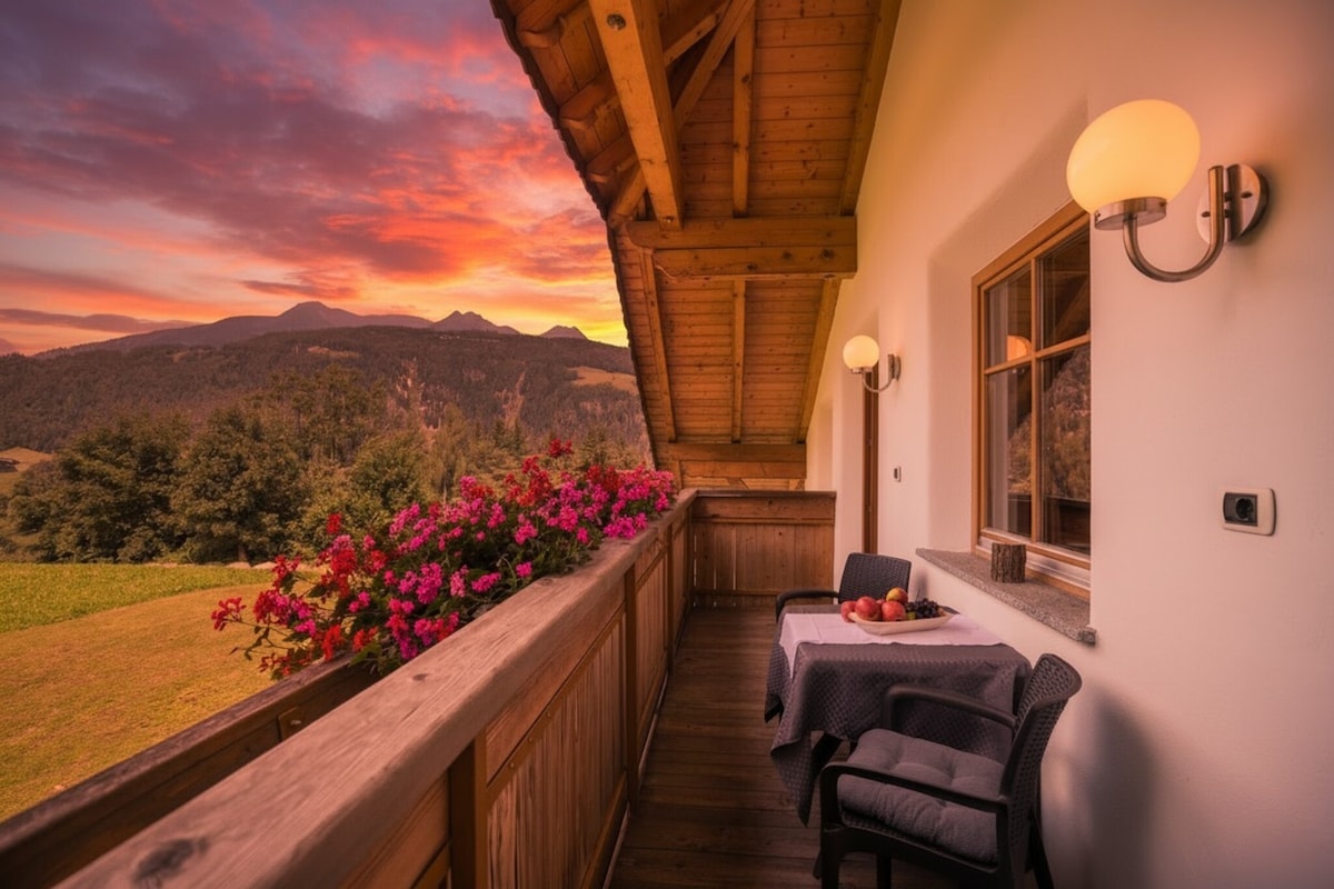 One out of our five delicately renovated apartments located on the second floor of a charming, characterful farmhouse. It is one of the oldest buildings of a cosy little village in the Valle d’Isarco in Northern Italy. We find ourselves right in the center of sun-blessed South Tyrol, on a hilltop at the entrance of the Gardena and Funes valleys. Close to the dolomites mountains but not far away from the popular towns of Bolzano and Bressanone it is an ideal starting point to explore the region.