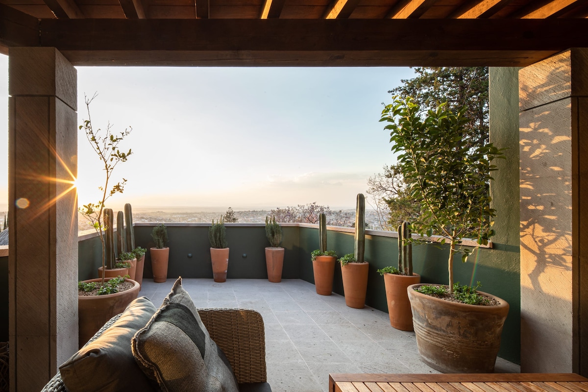 Este departamento ofrece una habitación Tipo hotelero en el primer piso. Con muebles hechos a mano por artesanos de Guanajuato, lámparas artesanales y decoración típica de San Miguel, cada espacio refleja un estilo colonial moderno, minimalista y elegante. Los huéspedes disfrutarán de una estancia en un departamento inteligente, equipado con aire acondicionado inverter 2025, Smart TV. Todo dentro de un entorno rodeado de plantas, fuentes y rooftops con vistas a la Parroquia. La experiencia se