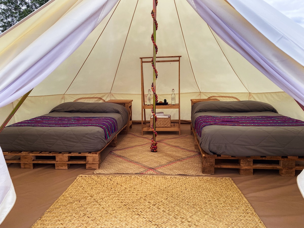 En nuestro glamping te alojarás en una pequeña casa rodante situada en un entorno arbolado en donde sentirás el contacto con la naturaleza sin sacrificar las comodidades de hospedarse en un hotel. Básicamente, te ofrecemos una forma de acampar lujosa con romántico jacuzzi climatizado con sistema de hidromasaje, un baño espectacular para tomar una ducha con agua muy caliente, una acogedora terraza para trabajar, hacer fogata o relajarte con copa de vino. Las mascotas son bienvenidas.