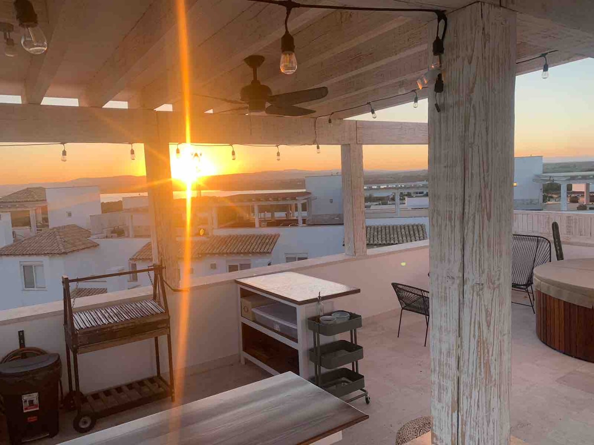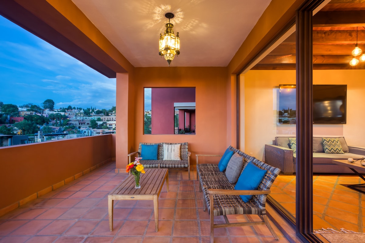 Beautiful new Spanish style build with modern conveniences located just blocks from the Parroquia. This large 2 bedroom apartment is brand new with rooftop jacuzzi with views of the Parroquia, filtered water throughout, large closets, large tubs, and rooftop dining gives you that old world feel with all new amenities. We offer the most comfortable, brand new beds with luxury bedding and pillows, all brand new. The location can't be beat in a safety of Centro with walking distance to everything.