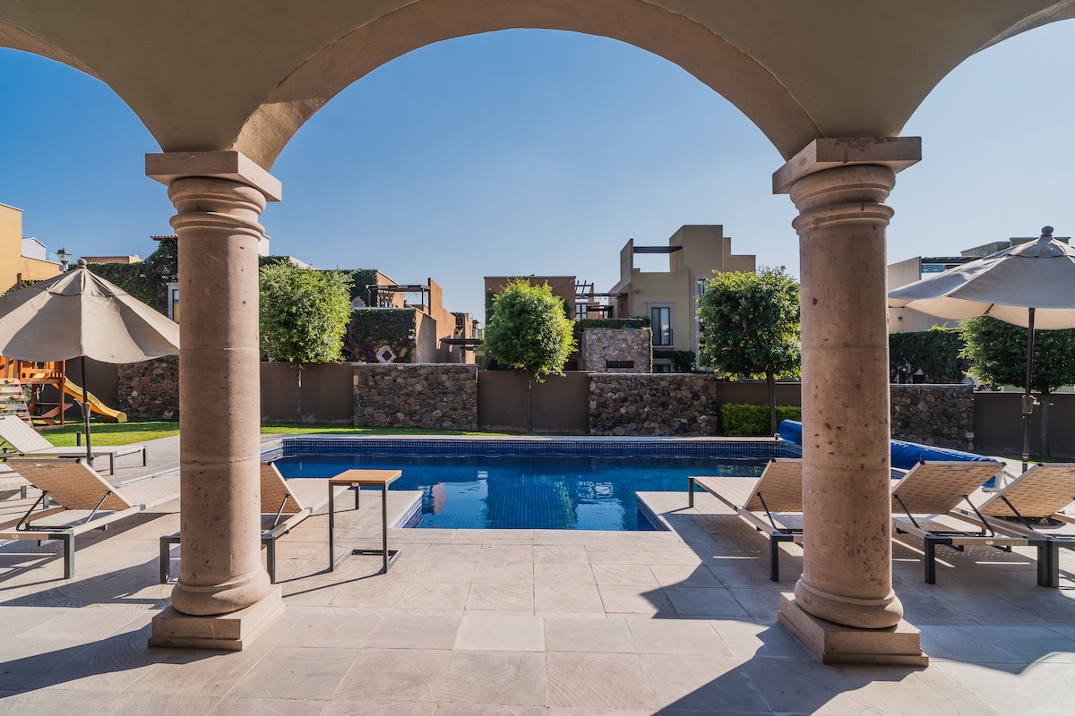 Private paradise two bedroom home located in a quiet and peaceful residential area in San Miguel “Villa de los Frailes”. - Housekeeper 1 day/week - Private heated pool and gym - Office - Indoor Garage (Electric Door) - BBQ > 6min drive to City Market/La Comer > 15min drive to La Parroquia > 0.5 miles walk to “Unidad Deportiva municipal” * FREE Pickle-ball, Squash,Tenis, Soccer, Basketball,Box, Running Track One Dog under 16 lbs (7 kg) is welcome (additional pet fee applies)