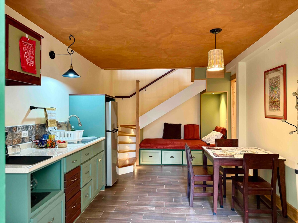 This unique place has a style all its own. Bright, cozy suite on the second floor, ideal for guests looking for a comfortable space in SMA. Accessed by stairs, this suite offers rustic charm with modern comforts: Queen bed, a cozy seating, heater and a kitchenette with an electric cooktop, refrigerator, coffee maker, and basic utensils. Private modern bathroom. Located just 2.4 km from the Parroquia, close to Plaza La Luciérnaga, Hotel Casa Primavera and public transport at your doorstep.