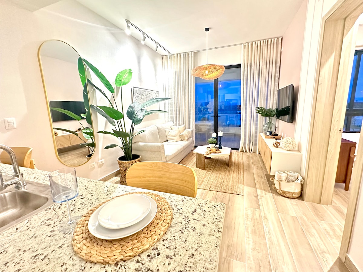 Enjoy a modern and elegant luxury suite in the exclusive Central Park, Downtown Punta Cana. Just 5 minutes by car from the beach and 12 minutes from the airport, surrounded by nearby attractions within walking distance: Coco Bongo, Hard Rock Café, water parks like Dolphin Discovery and Caribbean Lake Park, as well as restaurants, supermarkets, and shopping centers. Perfect for a 5-star stay, offering luxury, comfort, and an unbeatable location in the vibrant and safe heart of Punta Cana.