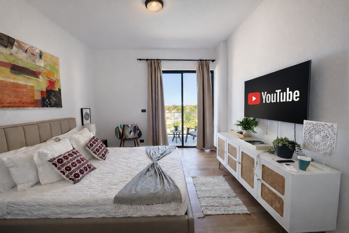 Beautiful one-bedroom apartment, designed to comfortably accommodate up to four guests, featuring a king-size bed, plus an inflatable mattress. It features carefully chosen decoration to create a welcoming atmosphere. It includes a comfortable bedroom, a functional living area, a fully equipped kitchen, and a full bathroom, as well as air conditioning and Wi-Fi. Perfect for couples, or travelers seeking comfort and a convenient location close to Downtown Punta Cana and beautiful beaches.
