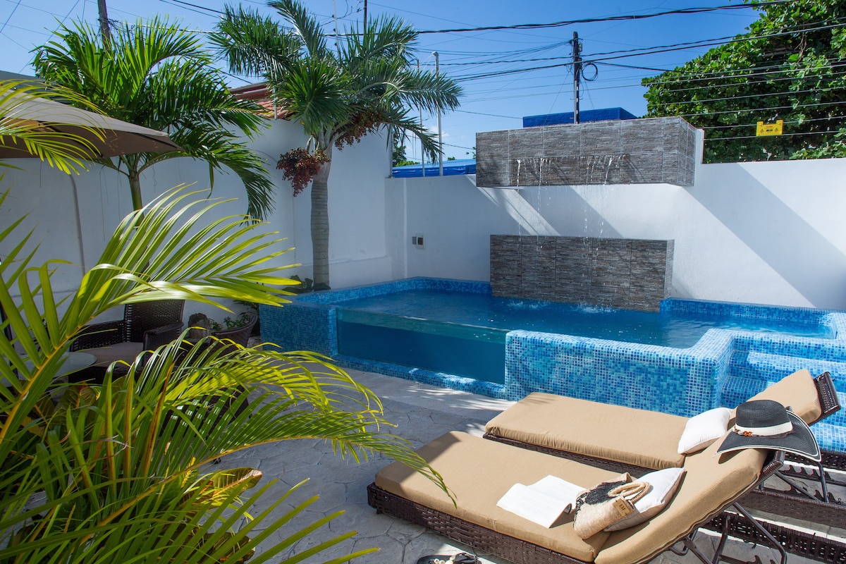 ♥凉爽的蓝色♥私人水疗泳池/坎昆市中心/烧烤架