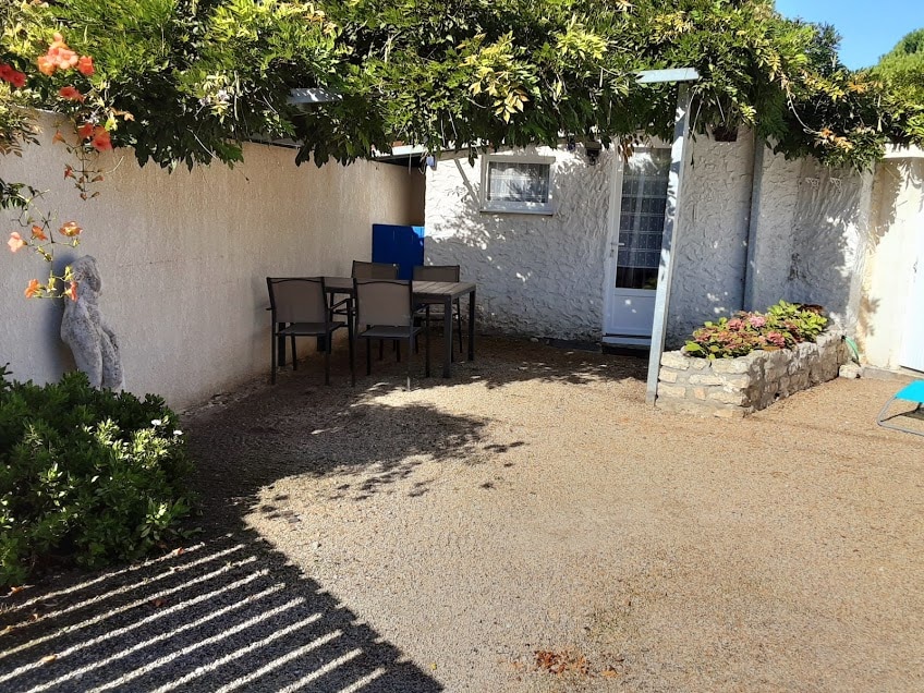 Propriété clos de mur, ensemble de 3 maisonnettes dans un espace fleuri et arboré, au calme, autour de la piscine non chauffée (ouverte de mai à octobre) et du coin barbecue. Chaque maisonnette dispose d'une terrasse en bois avec table parasol et transat, cuisine aménagée, chambre séparée avec lit 2 places, séjour salon avec TV, salle de bain avec douche à l'italienne. Buanderie avec lave linge et sèche linge. Draps et serviettes de toilettes non fournies. Parking privé et gratuit.