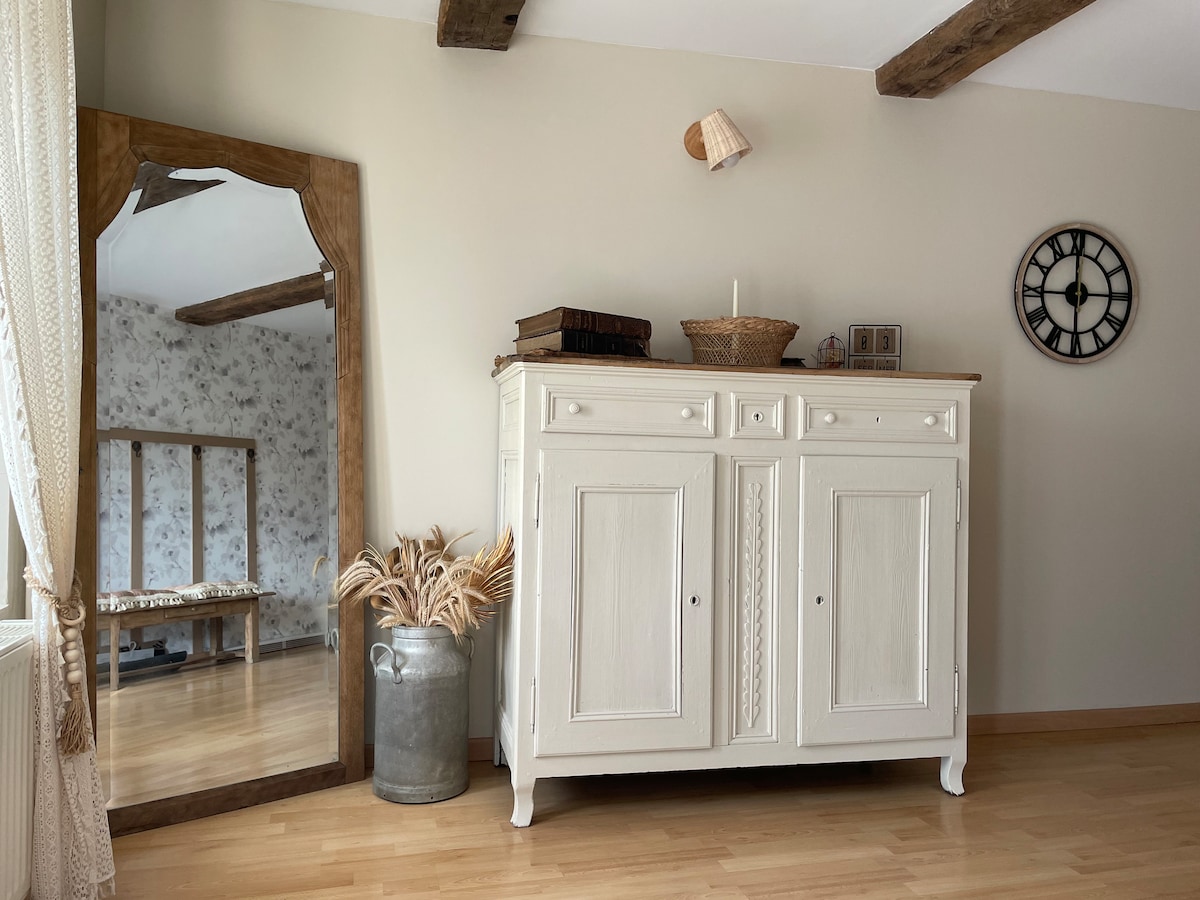 Agréable loft contemporain de 80 m2 dans une ancienne grange rénovée. L’habitation individuelle se situe dans une rue calme de Bazeilles. Elle est composée : - Au rez-de-chaussée : garage, accès sur petit patio (12 m2) - Au 1° étage : espace de vie ( salon, salle à manger) avec cuisine intégrée ouverte, salle de douche, toilettes - Au 2° étage: mezzanine aménagée en espace nuit /coin bureau. Les fenêtres de toit (électriques avec volets) assurent l’éclairage naturel des espaces de vie.