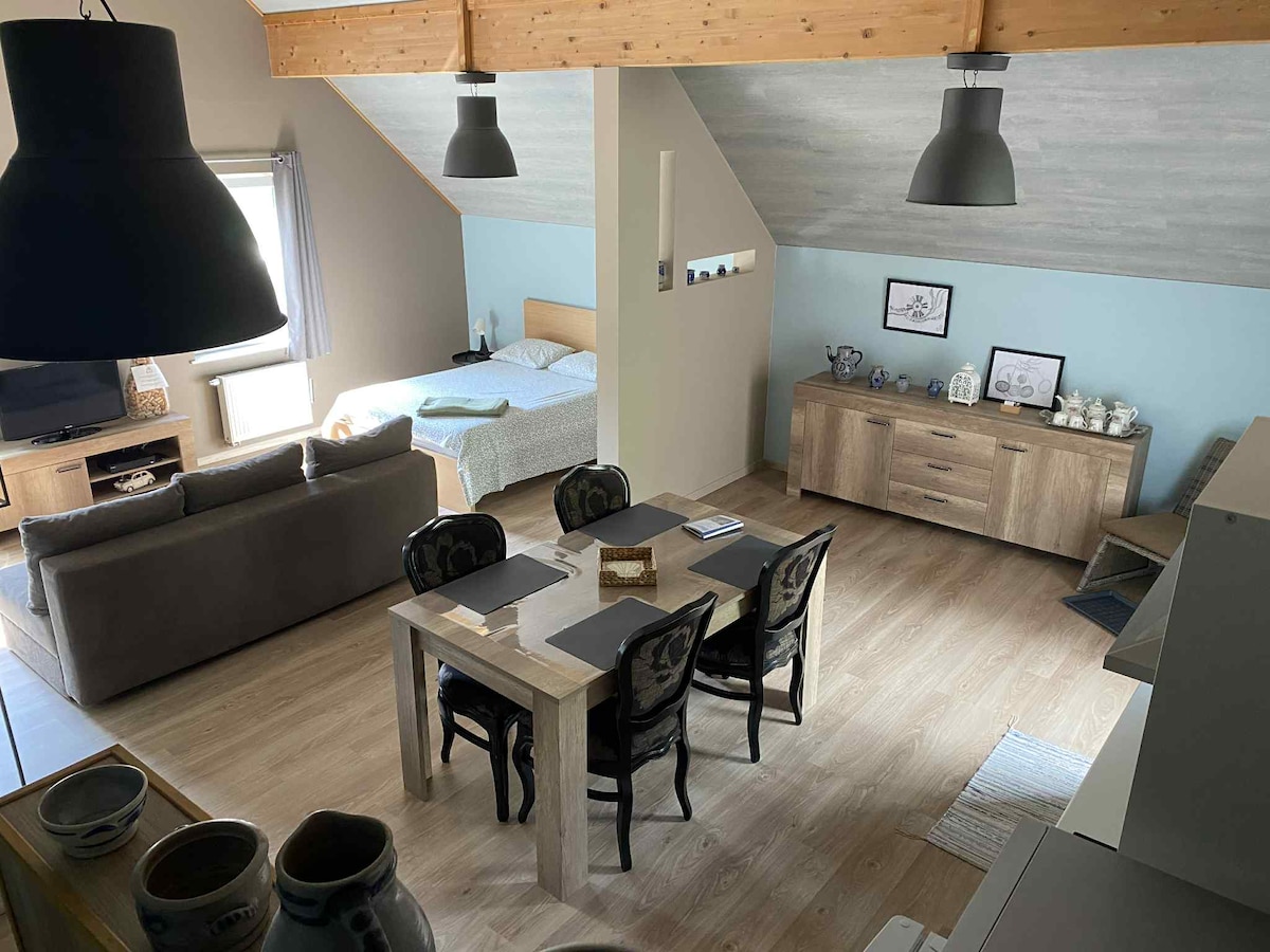 Gezellige studio in landelijke & groene omgeving: ☞ Uitzicht op onze schapen & alpacas Harry + Barry ☞ Eigen balkon ☞ Gelegen in een rustige, doodlopende straat ☞ Gratis parking ☞ Beddengoed en handdoeken voorzien ☞ Jullie trouwe viervoeter is welkom "Of je nu op zoek bent naar een rustige ontsnapping of een avontuurlijke vakantie, deze studio biedt de ideale uitvalsbasis." ☞ Mooie regio om te wandelen ☞ Typische Ardense dorpjes