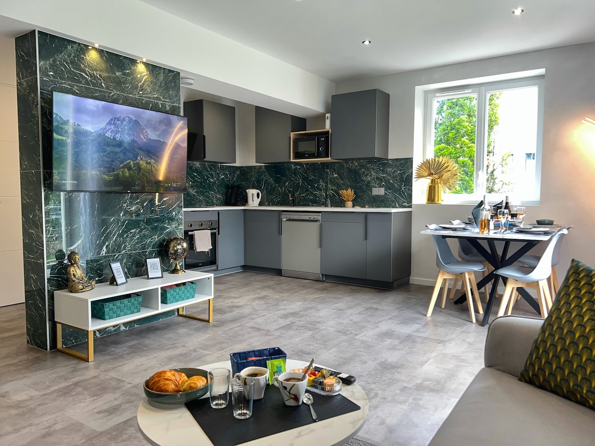 💎💎💎 BIENVENUE à L'EMERAUDE 💎💎💎 Appartement NEUF, CALME, jusqu'à 4 voyageurs ★ Emplacement stratégique en cœur de Maurienne, aux pieds des cols mythiques, pour skieurs et cyclistes ★ ★ Appartement parfait pour travailleur ou vacancier ★ ★ A 20mn du Télécabine Orelle/Valthorens ★ A 5mn de la gare de St Jean de Maurienne et ses commerces ★ ★ 25mn de l'Italie ★ ★ 10m² de TERRASSE, Local Ski/Vélo ★ ★ Stationnement GRATUIT et RESERVE ★ ★ WIFI / Fibre / Netflix GRATUIT ★.