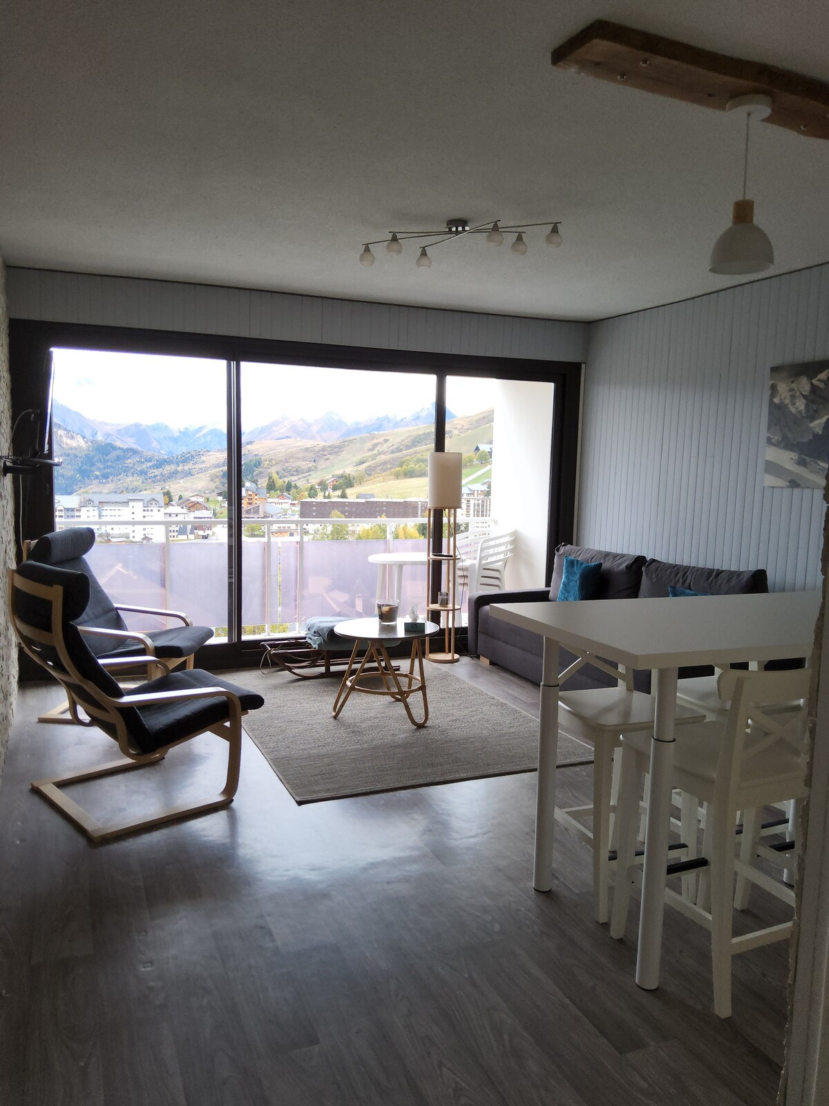 Venez séjourner dans cet appartement rénové récemment. Avec ses 4 couchages comprenant un canapé lit (avec un vrai matelas!) et un lit 2 places en mezzanine, cet espace est parfait pour une escapade en montagne. Profitez de la vue imprenable sur les sommets depuis le balcon. Le logement comprend un accès direct au piste avec un casier à ski. L'appartement est totalement équipé pour passer un bon séjour: cuisine aménagée, TV, lave vaisselle, lave linge séchant..