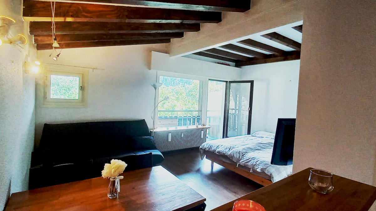 Charmant appartement indépendant et rénové, au rez-de-jardin de notre chalet d'habitation. L'appartement est constitué de : - Cuisine équipée - Séjour avec TV connectée, lecteur Blue-Ray, abonnement Netflix et une banquette-lit (160x200cm) - Chambre indépendante et fermée avec 2 lits (90x200cm) réunissables en lit king size - Salle de bain indépendante, avec baignoire, douche, et WC - Terrasse et jardinet privés Connexion WIFI gratuite Draps, serviettes et torchons fournis : voyagez léger !