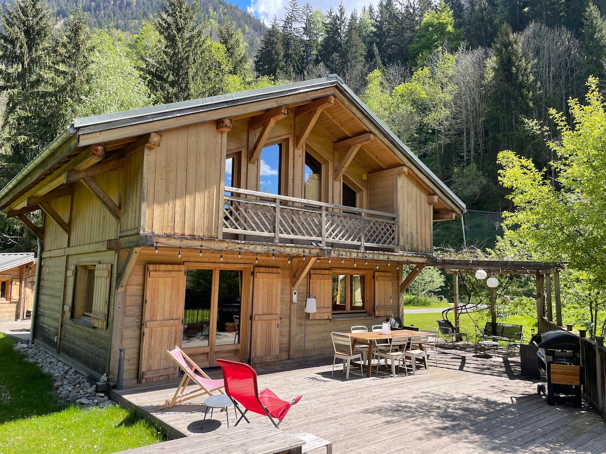 Chalet Indépendant neuf de 80m2 au coeur de la vallée de Chamonix face à la chaîne du Mont-Blanc. Pour 6 personnes, le chalet comporte 2 chambres, 1 salle de bain , un toilette séparé et 1 espace salon et cuisine toute équipée. À 300m du bus et des commodités, à 5 minutes des pistes et 10 minutes du centre de Chamonix.