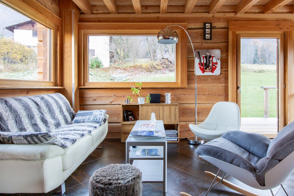 迷人的老式木石度假木屋,可欣赏勃朗峰的美景