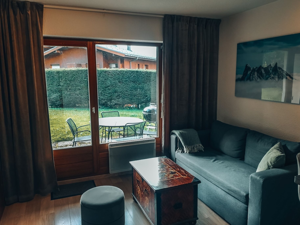 This attractive 35 m² apartment is newly renovated with beautiful views of Mont Blanc. The apartment is located in the old ‘Grange’ next to our main house. We share an outside staircase and terrace which bring you to the entrance of your private apartment on the first floor. This apartment is not suitable for people with reduced mobility.