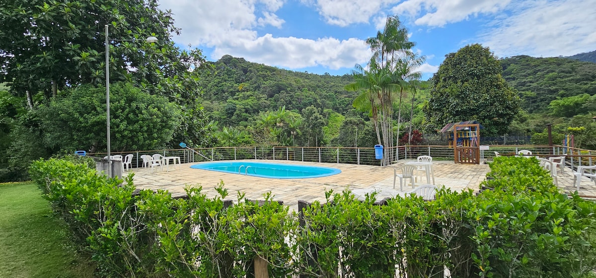 A 1 hora de Vitória e 20 minutos do centro de Domingos Martins, você estará num lugar de paz, em meio a natureza, com fauna e flora exuberantes. O Rio Jucu atravessa a propriedade. O condomínio tem espaços para lazer, tais como trilhas, campo de futebol, piscina, área de jogos, WI-FI, dentre muitas outras comodidades. Porém, o diferencial deste lugar fica por conta da orquestra dos pássaros junto com o som do Rio e o silêncio de todo o resto. Atenção: Não fornecemos roupas de cama e toalhas
