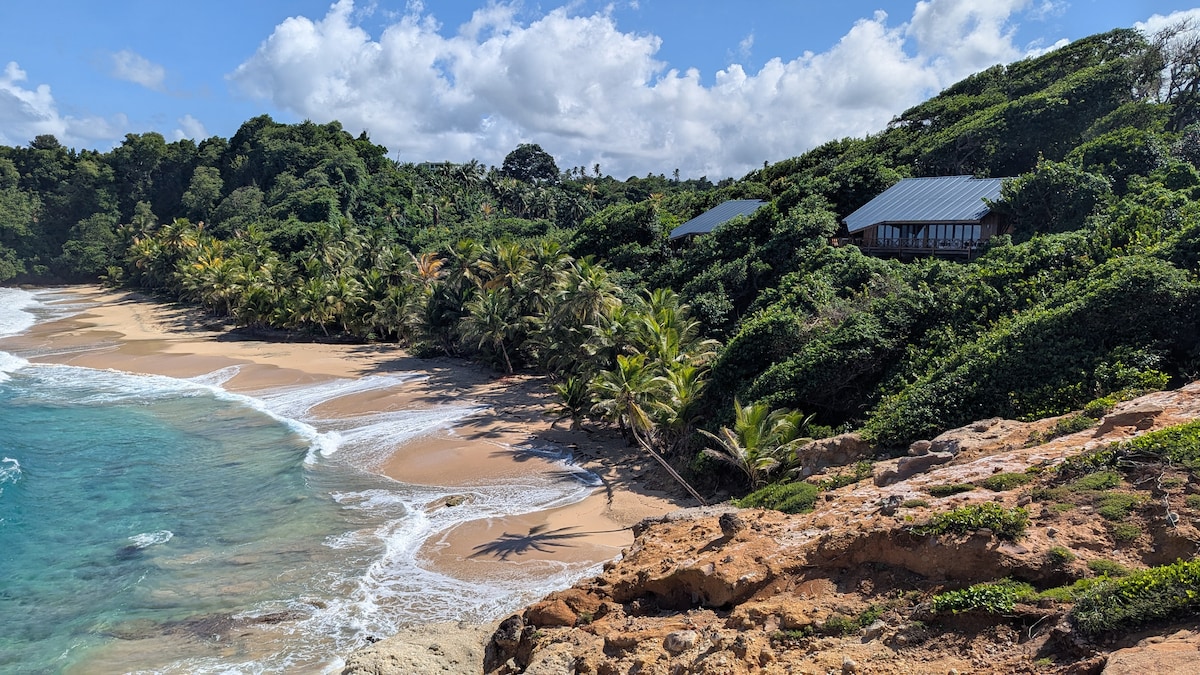 The Cottage at Villa PassiFlora represents an excellent choice for individuals or couples who don’t need the space of the Villa, and it adds the option of stays of fewer than 4 nights. The cottage is on the Villa PassiFlora property, surrounded by forest, fruit trees and tropical plants, with a view through the forest to the Atlantic Ocean. Guests have ready access to the trail leading to Pointe Baptiste.