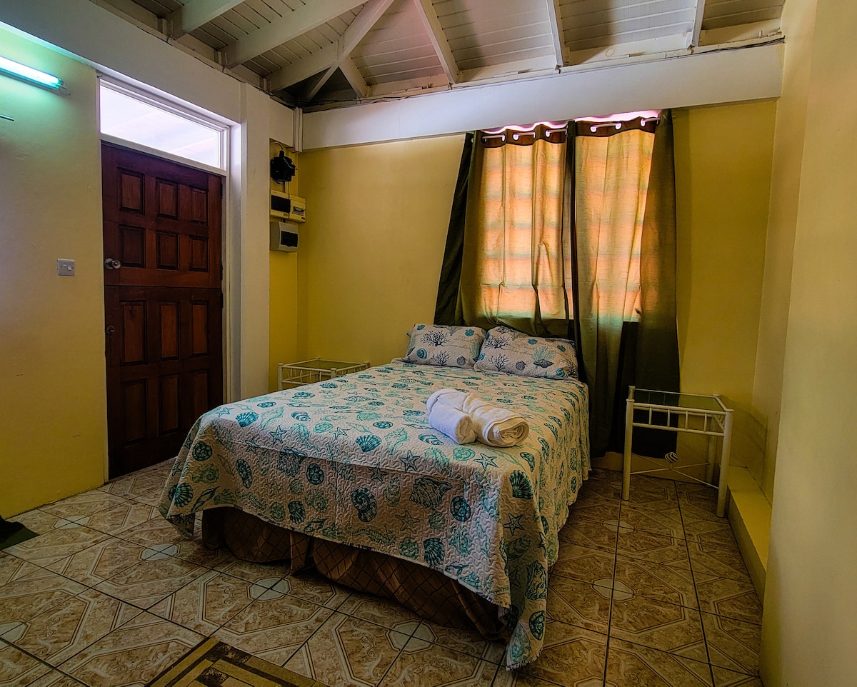 This beautiful unit will reward you with an amazing and spectacular ocean view, walking distance from Dominica's most popular beach "Mero Beach". This unit has two queen size bed, fully equipped kitchen stocked with all the items required for cooking. A four burner gas stove/oven and microwave is ready for you to cook your favorite dish. It's also equipped with internet, cable TV, and a blue tooth speaker. We supply beach cooler and beach towels for you to use at the beach. Welcome to Dominica