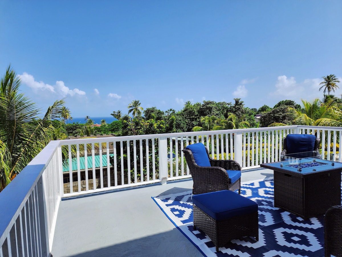 The Crow's Nest suite is situated on the upper level of Hodges Bay House. Offering spectacular ocean and mountain views in 1,000 sq. ft. spacious, modern indoor and outdoor living, near beach access. We are 20 minutes from Douglas Charles Airport, close to beaches ( 15 mins. from Batibou Beach, 10 from Baptiste) 5 mins. car ride to the village of Calibishie. The suite is air conditioned.** THE WATER IS STRICTLY SOLAR HEATED. NO SUN, MEANS NO HOT WATER. **AC from 7pm to 7am.