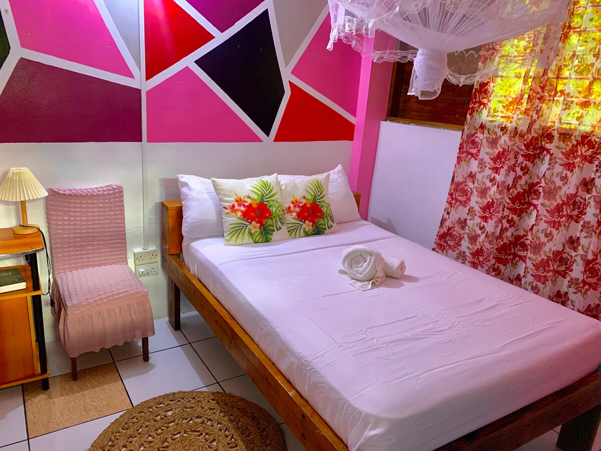 Relax in Green Serenity, a cozy, green-themed room with a comfy double bed, ensuite bathroom, private coffee station, and outdoor seating. Guests enjoy access to the shared outdoor kitchen and laundry facilities. Just minutes from the Boiling Lake trek head, this is the ideal spot for nature lovers and couples seeking tranquility. Fresh meals on site. Explore our other rooms: Blue Tranquility | Coral Haven Check out my helpful guide.