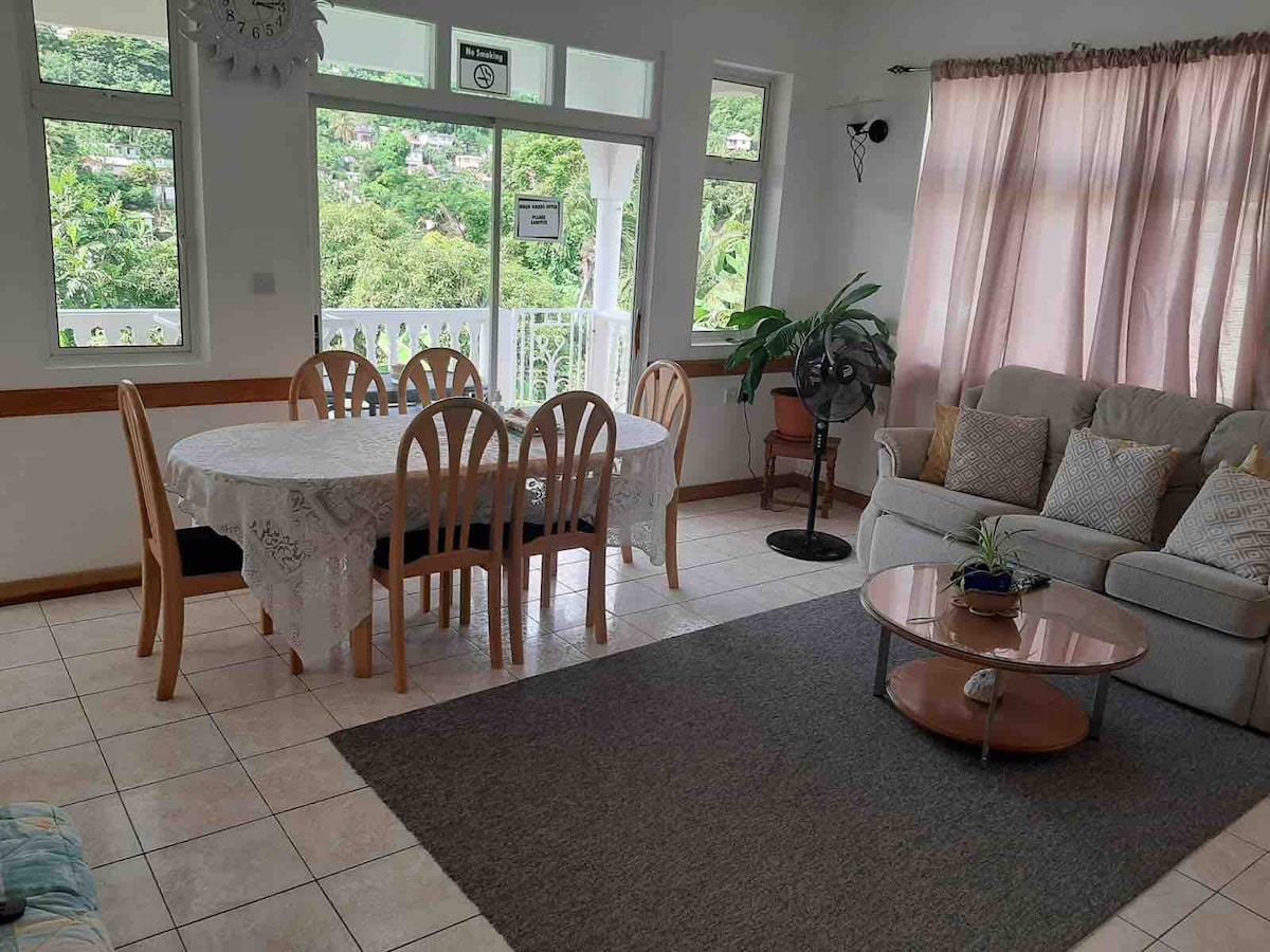 The Crow's Nest suite is situated on the upper level of Hodges Bay House. Offering spectacular ocean and mountain views in 1,000 sq. ft. spacious, modern indoor and outdoor living, near beach access. We are 20 minutes from Douglas Charles Airport, close to beaches ( 15 mins. from Batibou Beach, 10 from Baptiste) 5 mins. car ride to the village of Calibishie. The suite is air conditioned.** THE WATER IS STRICTLY SOLAR HEATED. NO SUN, MEANS NO HOT WATER. **AC from 7pm to 7am.