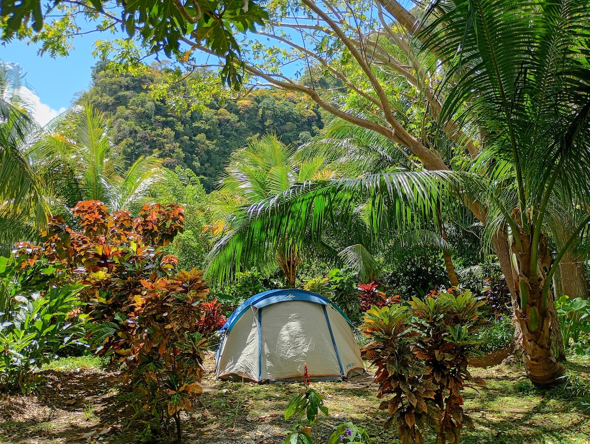 Waitikubuli National Trail hikers and nature lovers, tent (bring your own or rent one from us) behind the main Kitchen (see pictures). You will have access to the grounds, including the kitchen and washroom (includes newly built shower), BBQ, and patio area. Complimentary breakfast is included (see notes below). Additional local meals are available for purchase with 24 hour notice. Come and enjoy a restful stay on Kalinago land with great views of the ocean and islets, see you soon!