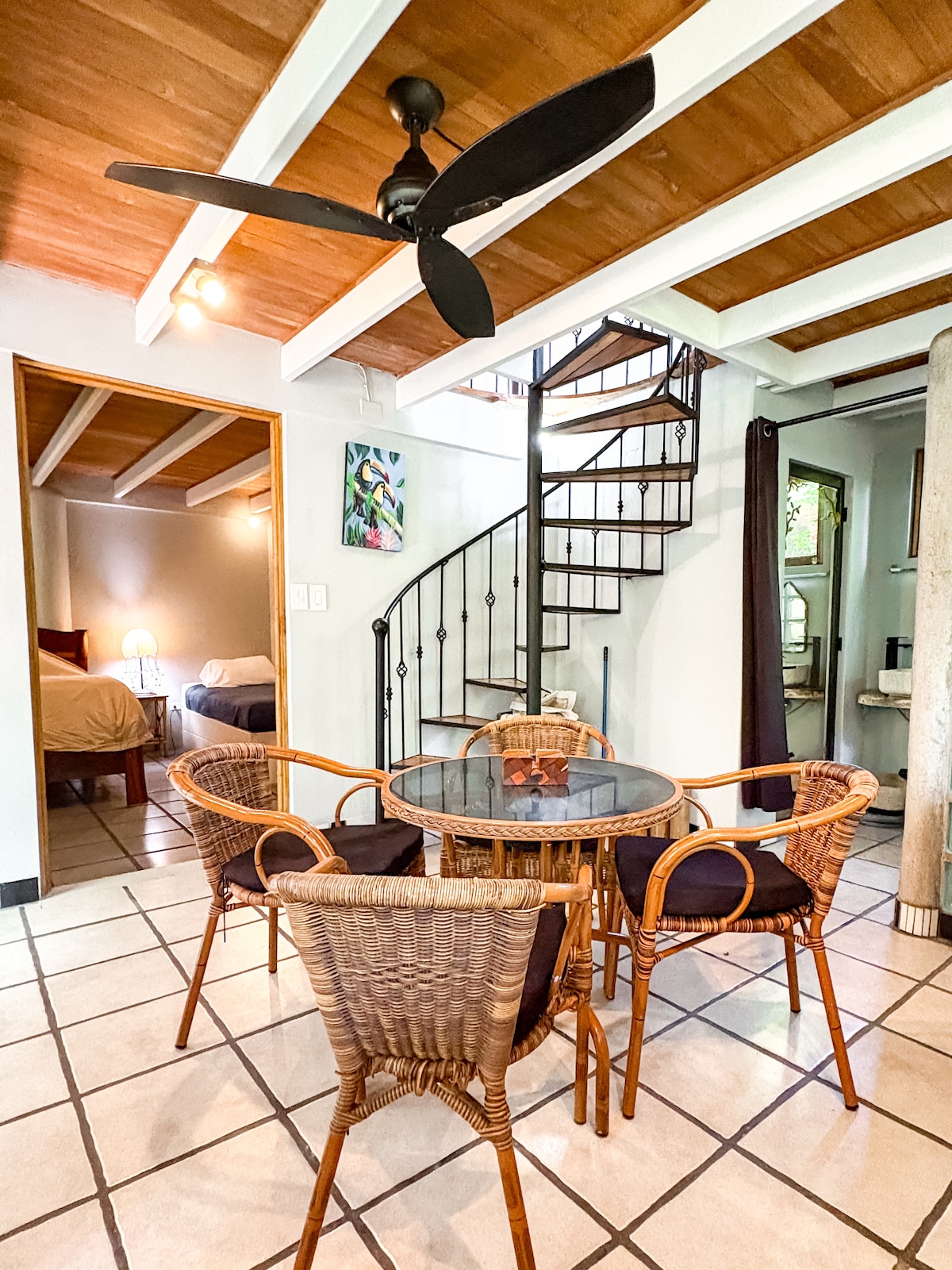 Talk about Location, Location, Location! Surfside Villa Dominicalito is uniquely located on a lush terraced hillside with a breathtaking 180 degree white wash view where you can watch the birds and monkeys all day. Surfside Villa Dominicalito is located inside the gated community of Canto del Mar (Song of the Sea) which many regard as the “best location in town.” It is a 10-minute walk to Playa Dominicalito and minutes from shopping, restaurants, and tourist attractions.