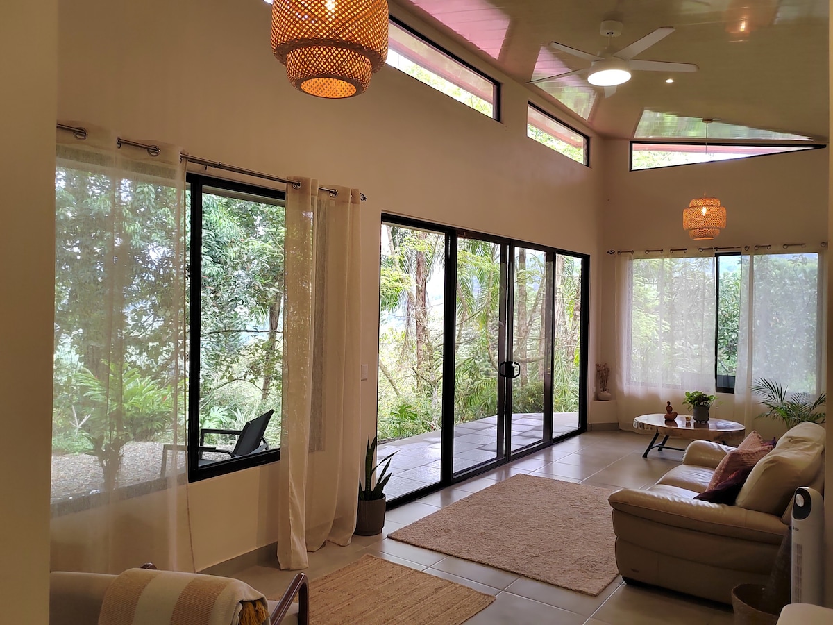 Open-concept villa equipped with all the comforts of home; fully stocked kitchen, smart TV, BBQ, plunge pool, wifi, and a private terrace/backyard. End a perfect day by sinking into the luxurious King bed, raved by guests as the comfiest bed in town. NO visitor policy and PLEASE no children/babies permitted. No 4X4 needed. Walking distance to shops, restaurants, banks, grocery stores, a short drive to Marino Ballena National Park and the most beautiful beaches!