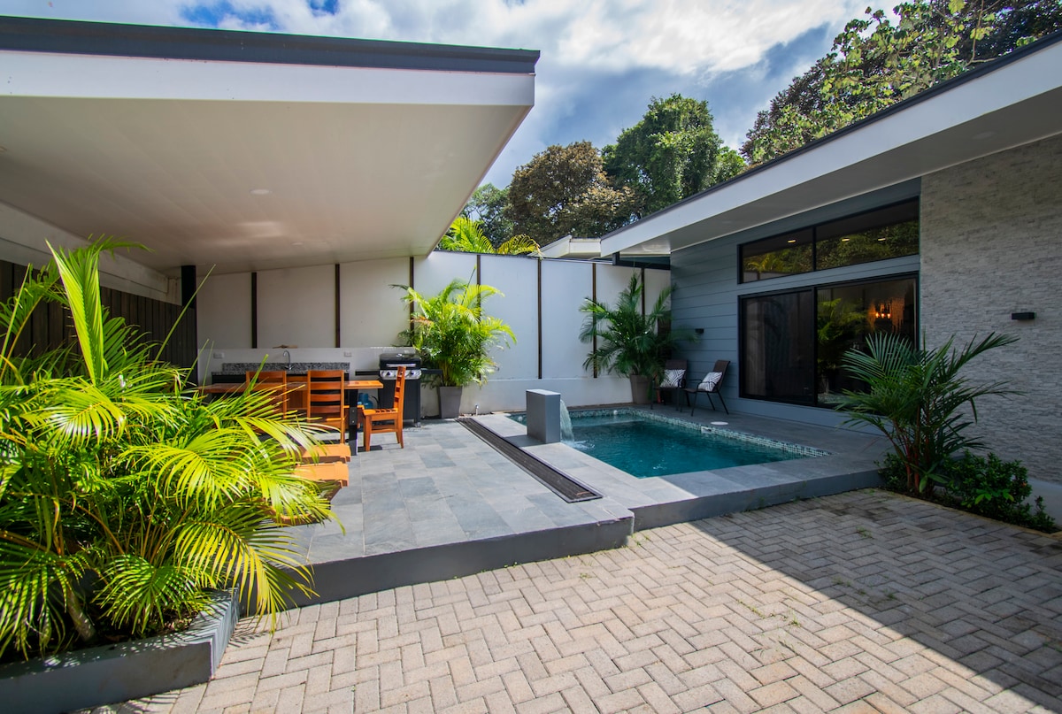 Cosy et moderne logement avec piscine privée à Bahia Ballena, Uvita. Chambre avec lit Queen, salon avec canapé-lit , cuisine entièrement équipée et salle de bain. Wifi haute vitesse dans toute la maison. A 20 minutes à pied de la célèbre plage à la queue de baleine et 30 de playa Chaman. Supermarchés et restaurants accessibles à pied et 25 minutes pour atteindre la gare d'Uvita. Surfs pour débutants à disposition sur demande, glacière et serviettes de plage fournis.