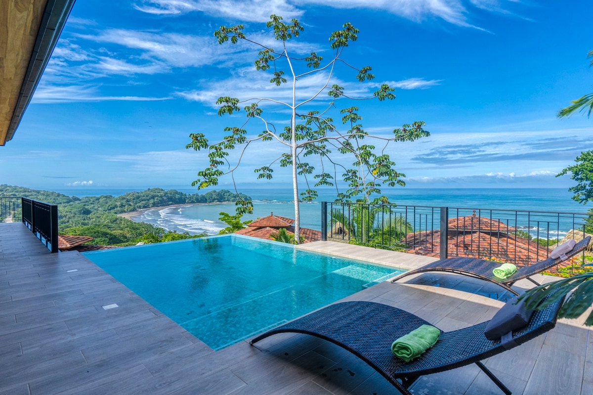 Talk about Location, Location, Location! Surfside Villa Dominicalito is uniquely located on a lush terraced hillside with a breathtaking 180 degree white wash view where you can watch the birds and monkeys all day. Surfside Villa Dominicalito is located inside the gated community of Canto del Mar (Song of the Sea) which many regard as the “best location in town.” It is a 10-minute walk to Playa Dominicalito and minutes from shopping, restaurants, and tourist attractions.