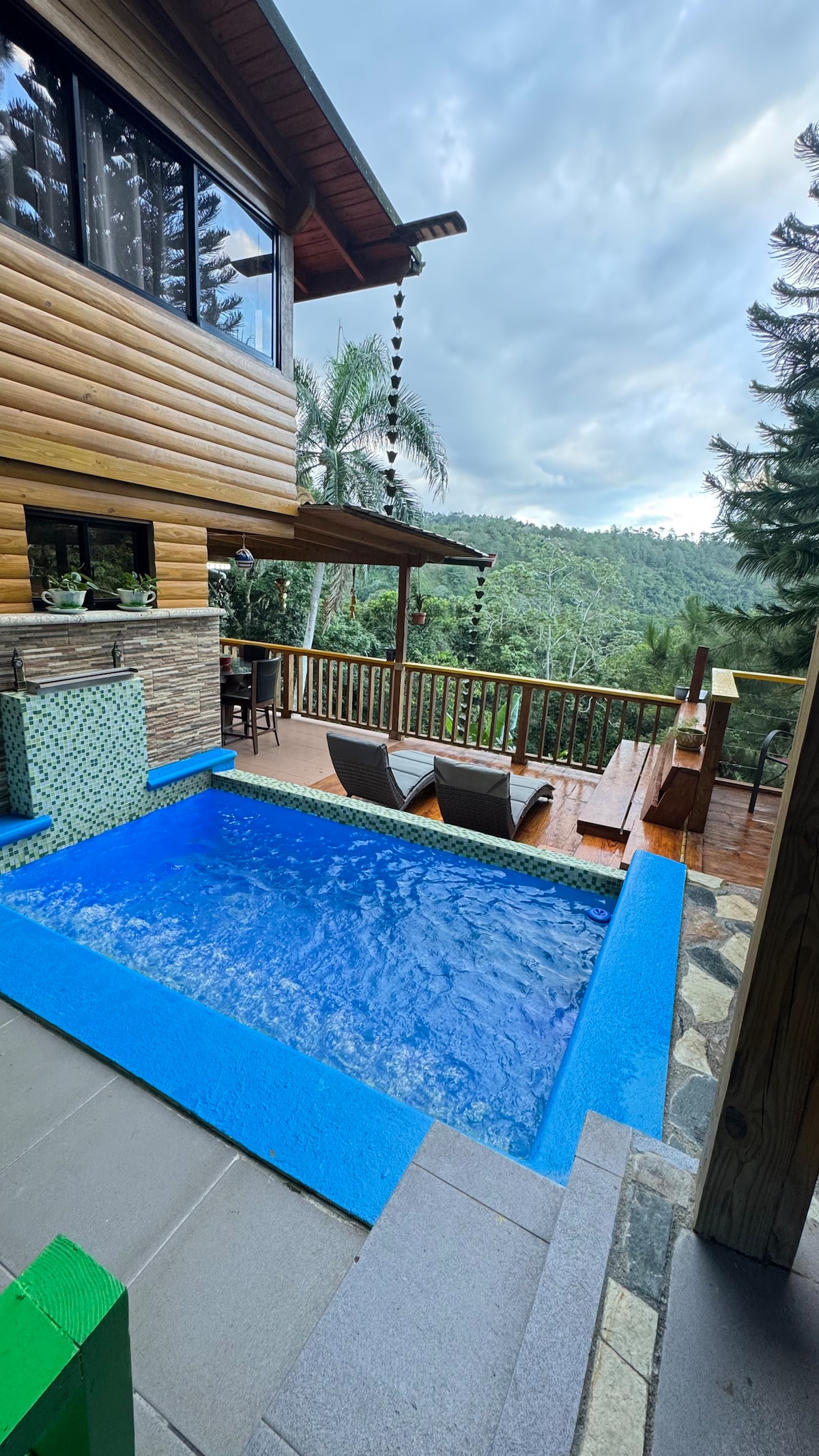 bienvenidos a Alpina House, una cabaña alpina en Pedro García con vistas al río. Cuenta con cama king-size, balcón privado, cocina equipada, Wi-Fi y aire acondicionado. Ideal para escapadas románticas o descanso en la naturaleza. Cerca hay senderos, paseos en bicicleta y opciones gastronómicas. ¡Vive una experiencia única en un entorno tranquilo y acogedor! jacuzzi climatizado. y tina de baño con una acogedora sala en el segundo nivel, ven y vive la experiencia de este mágico lugar...