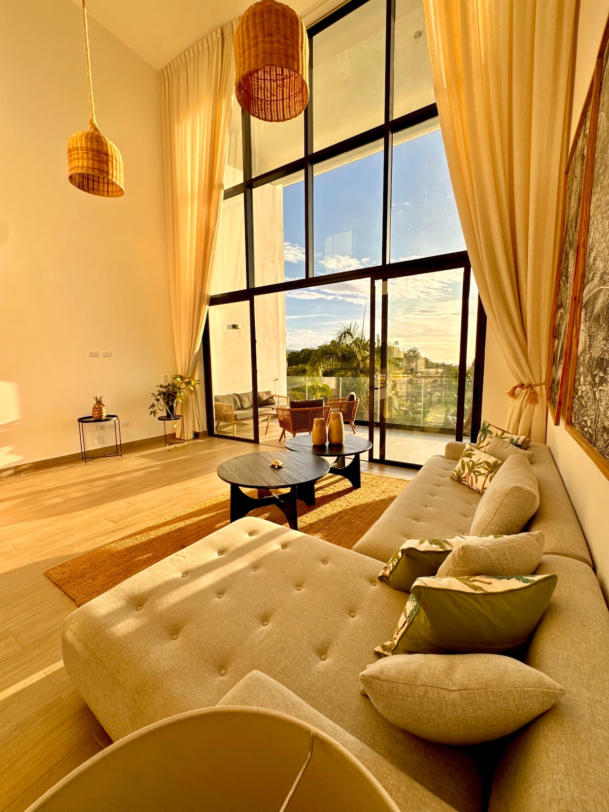 El loft de diseño moderno ubicado en el segundo piso de una casa de diseñador Francés con entrada independiente y terraza privada a minutos del parque Mirador Sur en una zona céntrica, residencial y tranquila de Santo Domingo. Con una fusión armoniosa entre lo urbano y lo natural. Grandes ventanales que permiten que la luz natural bañe el espacio, resaltando tonos tierra y verdes vibrantes. El loft con su propia terraza es un escape encantador en el corazón de la ciudad.