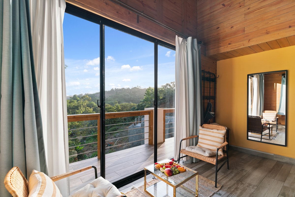 A colorful vibrant retreat w/ beautiful views of the Atlantic and lush green mountains awaits you, Veomar is a stylish modern with an upscale touch . At Veomar "Casita Axel " we've created a home that embraces the beauty of the natural environment that surrounds it while providing a modern, stylish space that welcomes guests to make themselves right at home. The outdoor space houses an infinity pool, In addition there’s a sunken fire pit great for a night cap and to view the stars up above.