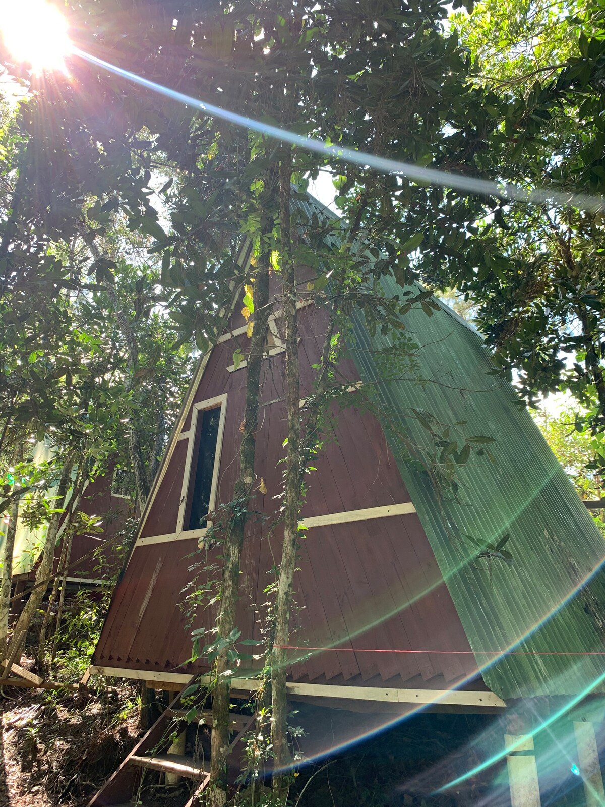 LA CHOZA at Chocolate Mountain is a GLAMPING A-frame structure with a palm thatched roof nestled into the hills of a community of cacao producers. We offer an semi-INCLUSIVE experience with Breakfast and Dinner included, lunches can be prepared by request for an additional cost. The Choza has a queen size pillow-top bed & can accommodate couples. Immerse yourselves in holistic harmony with nature through farm-to-table dining, chocolate making and more!