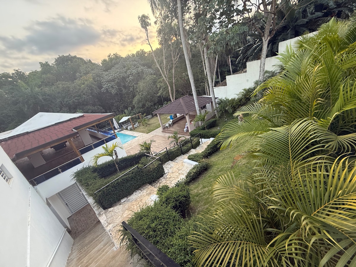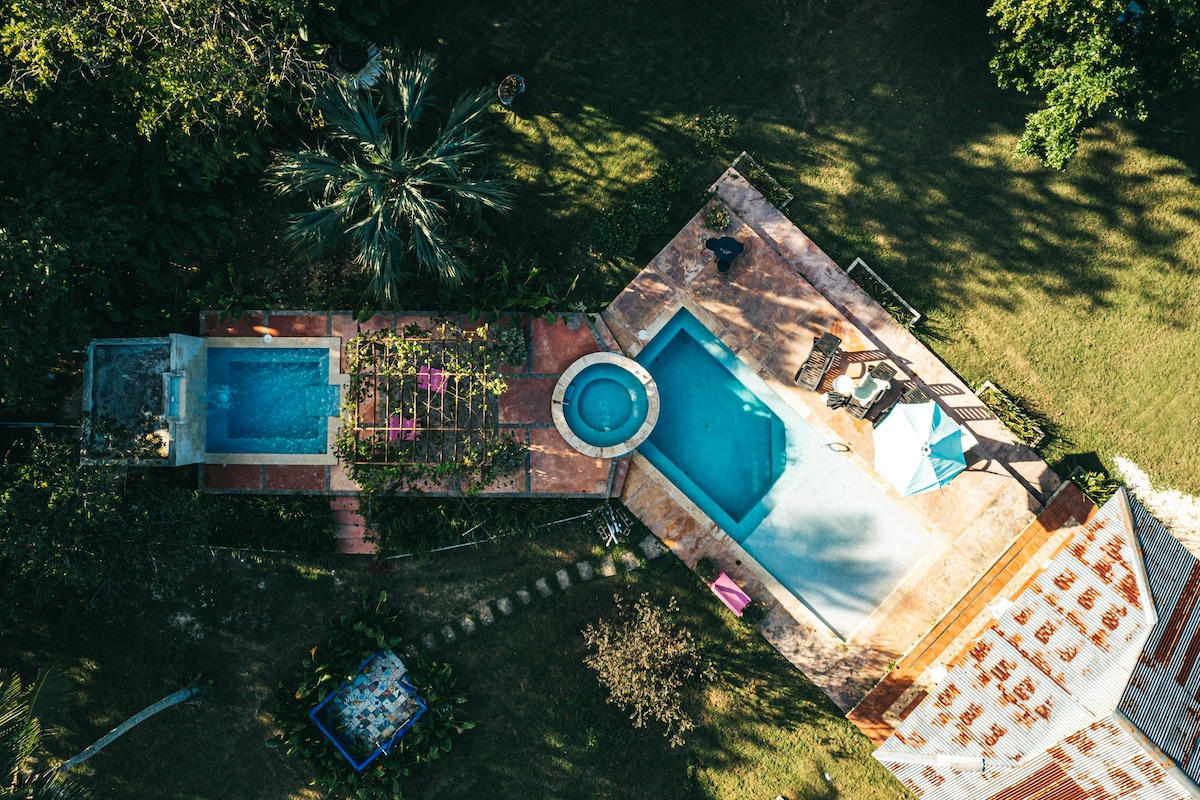 Descubre los hermosos colores de esta casa de 1940's, ahora un Bed&Breakfast. Estamos rodeados de grandes árboles, dentro de una plantación de caña de azúcar familiar, ubicada en la zona rural de Higuey en RD. Disfruta de un ambiente seguro y de paz, con acceso a tres piscinas, deportes de patio y varios jardines. Está ubicado a 30 minutos en vehículo de la playa, Aeropuerto de Punta Cana + Aero. La Romana y 15 mins. de supermercados. La habitación cuenta con smart tv, rápido wifi de Starlink.
