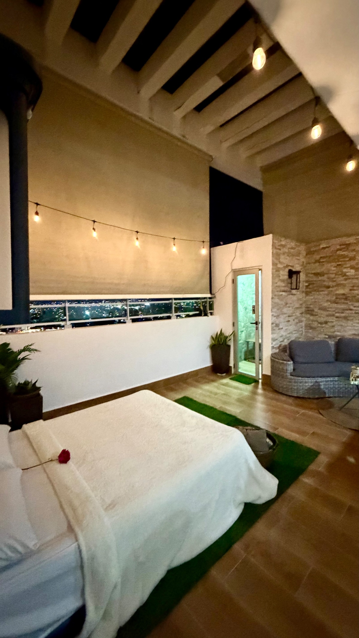 (DAYPASS) ESTE ANUNCIO ES (DAYPASS) Terraza privada, techada y semiabierta, diseñada para crear un ambiente íntimo y acogedor. Disfruta una cama inflable doble preparada con sábanas suaves, luz natural, detalles cálidos y una atmósfera perfecta para desconectar. Cuenta con piscina tipo plunge, cocina exterior equipada y área lounge para relajarte con total privacidad. Ideal para pasadías o estancias cortas.