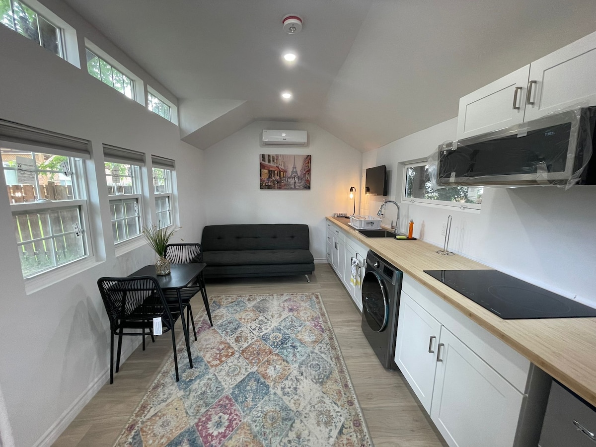 PRIVATE GUEST SUITE with OWN ENTRANCE. Boutique Hotel Suite inspired,offering amenities,privacy & charm.50”Samsung TV+Netflix.This Suite has a KITCHENETTE with SINK also mini-fridge,microwave,toaster-oven,slow-cooker, cooktop,coffee maker,kettle.PRIVATE BATHROOM with stand up shower.Includes dishes, glassware,utensils, towels,linens,coffee.Seasonal PATIO & lovely landscaping. Within Olde Riverside,close to shops,restaurants,grocery,parks, WFCU Centre.Short walk to a beautiful riverfront & trail.