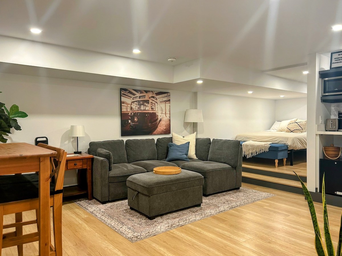 Enjoy a stylish and peaceful stay at this centrally located one-bedroom lower-level unit, perfect for both leisure and business travelers. With your private entrance, parking, and all the essentials, it’s your ideal home away from home. Features include a full kitchen, bathroom, internet, smart TV, one Queen and one sofa bed, and a functional workspace. Steps from FreshCo, Walmart, restaurants, and services. Minutes to Vaughan Mills, Canada’s Wonderland, Cortellucci Hospital and transit.