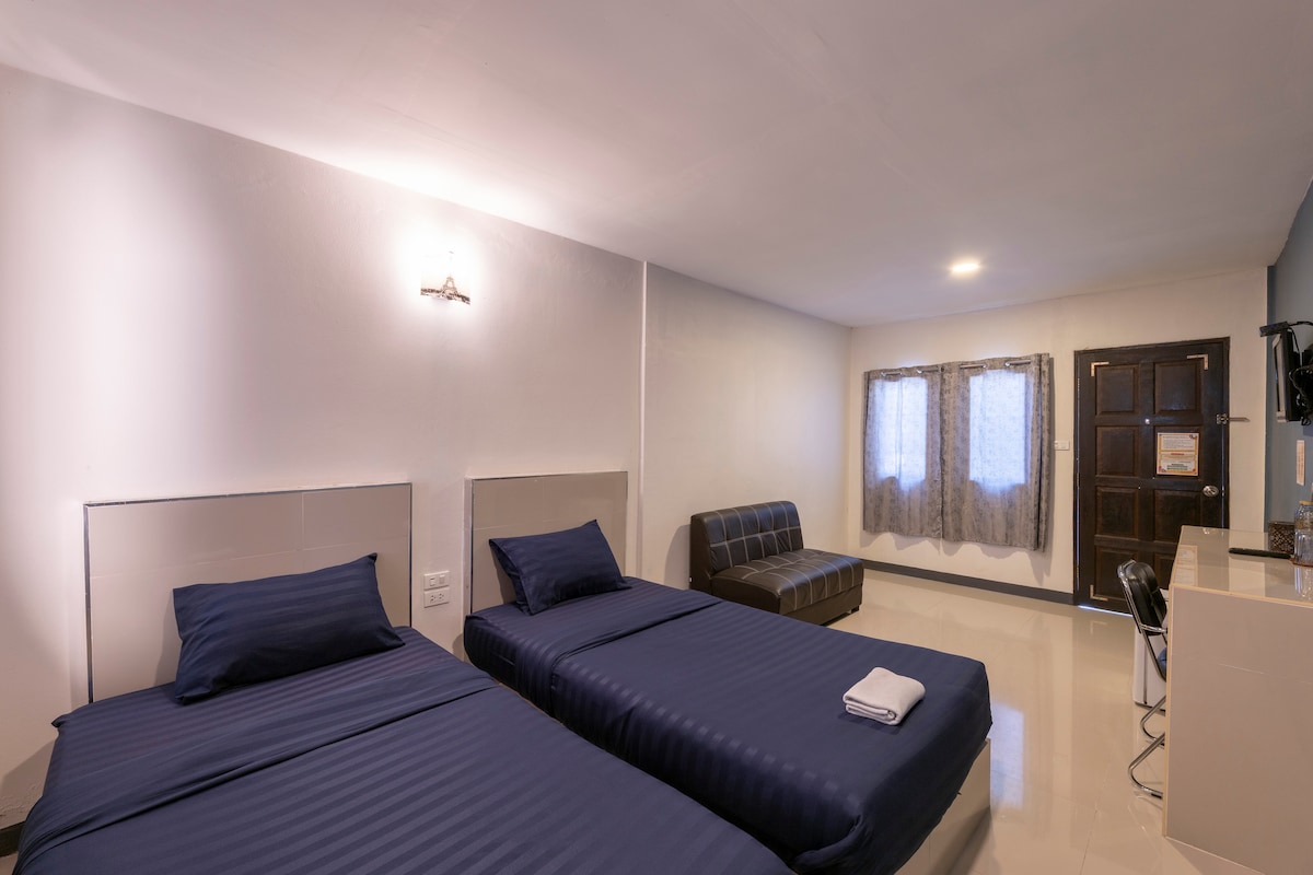 Bring the whole family to this great place with lots of room for fun.Spacious 3-bedroom home with 1 fully furnished bedroom (AC + bed), 2 extra empty rooms, 2 clean bathrooms, and a Thai-style kitchen. Great for families or long-term stays. Located near Big C, Robinson, and Saint Joseph School. Quiet neighborhood. Garage fits 2 cars. Note: Neighbor has a dog that may bark at times.