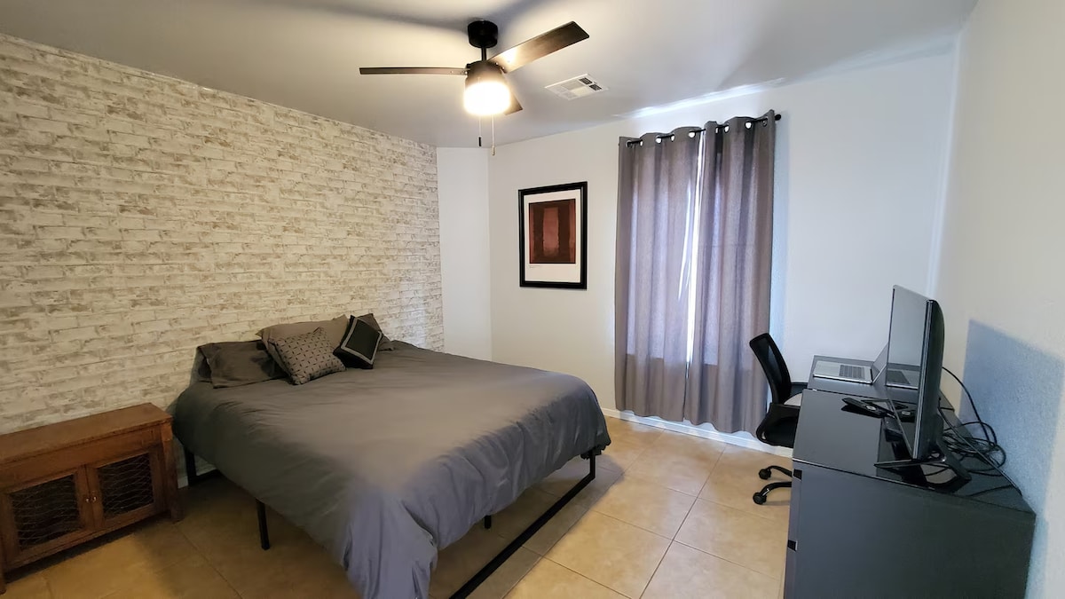 Cozy Private Room in Renovated Las Cruces Home Enjoy a clean, comfortable private bedroom in a recently renovated single-story home in Northeast Las Cruces. The home features modern appliances, granite countertops, and tile flooring throughout. Located in a quiet, low-traffic neighborhood just 0.10 miles from HWY 70, making travel around the city quick and easy. White Sands National Park, Spaceport America, WSMR, and NASA facilities are within driving distance, with a shaded park nearby.
