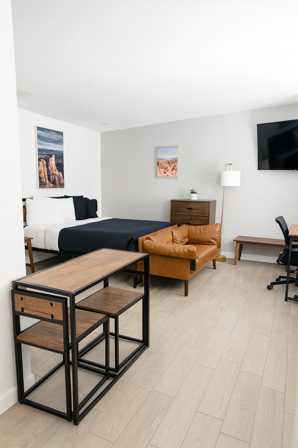 This fully-furnished modern home is perfect for weekend getaways or longterm stays. With latest in appliances and style, the Powder River Villa offers the comfort of home with a luxury feel. Stream Netflix in front of the stacked stone fireplace, decompress in the pebble rain shower, or simply relax on the back porch to the beautiful New Mexico sunsets. This stylish space can be the romantic escape you're seeking or comfortably fit your group of 7.