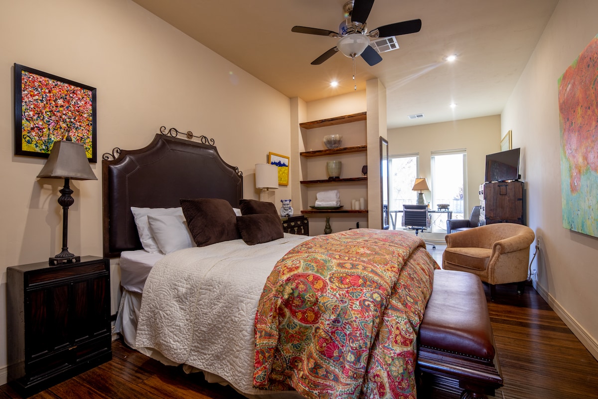 This stylish studio is located minutes away from UTEP, up the street from Top Golf and IFly, and just a short drive from El Paso’s downtown nightlife. This eclectic space includes private parking, queen size bed, private bathroom, 1 television in the bedroom. It’s within walking distance from N. Mesa street eateries. Mini fridge, coffee maker & microwave ensuite. ART is for sale at different prices. Use cash app or leave cash. *Not ideal for limited mobility guests*