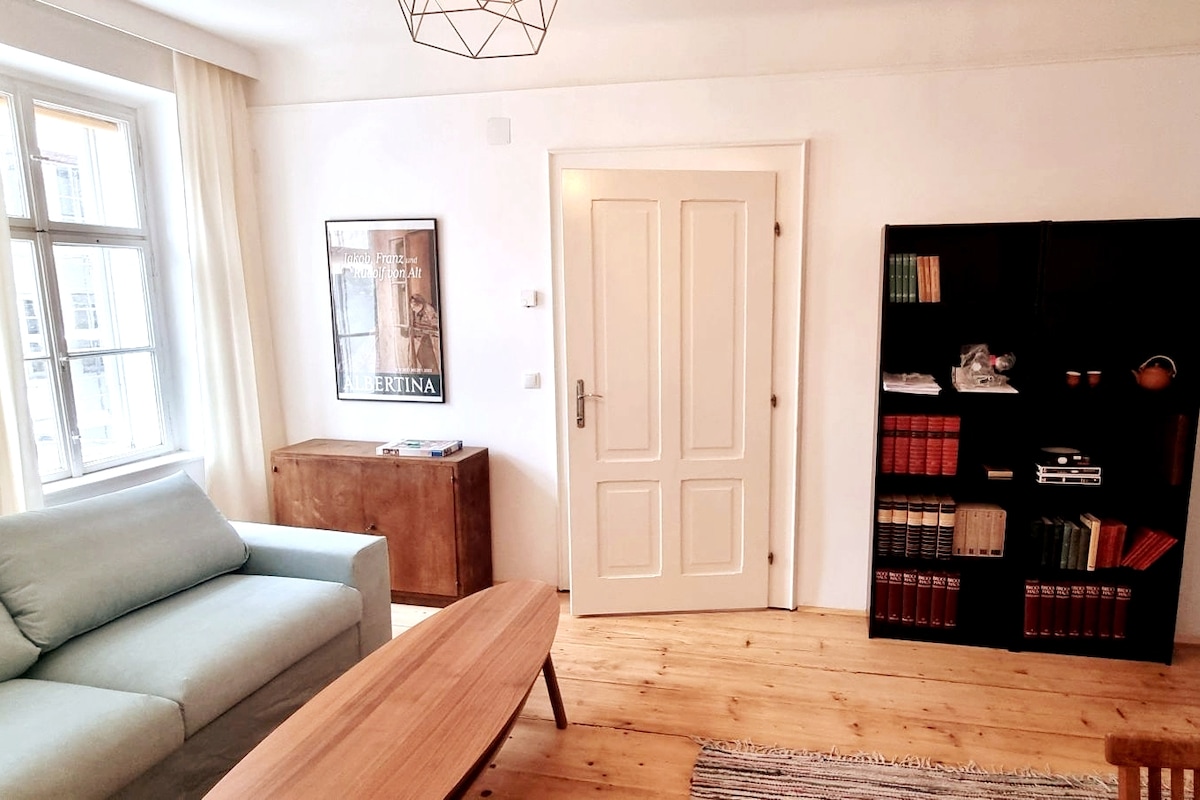 Herzlich Willkommen im ♡ Wiens! Die ruhig gelegene Butterfly-Suite im 12. Wiener Bezirk ist für 1 bis 4 Personen konzipiert - nicht nur für Musiker! Sie bietet einen großzügigen Salon mit Klavier, Essbereich, Küchenzeile mit Bar-Feeling und Nespresso, Bibliothek mit Arbeitsbereich, ein romantisches Schlafzimmer, WIFI und ein original 70er Badezimmer. Mit dem öffentlichen Nahverkehr - Bus, Straßenbahn und U-Bahn - ist man im Nu im Zentrum, beim Schloß Schönbrunn oder beim Hauptbahnhof. Enjoy!