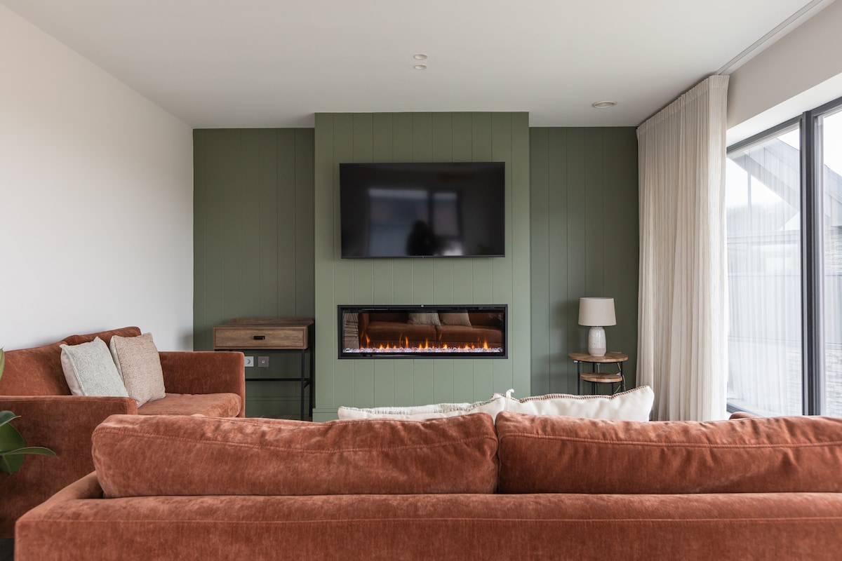 时尚的4卧室小屋,配备室内木炉