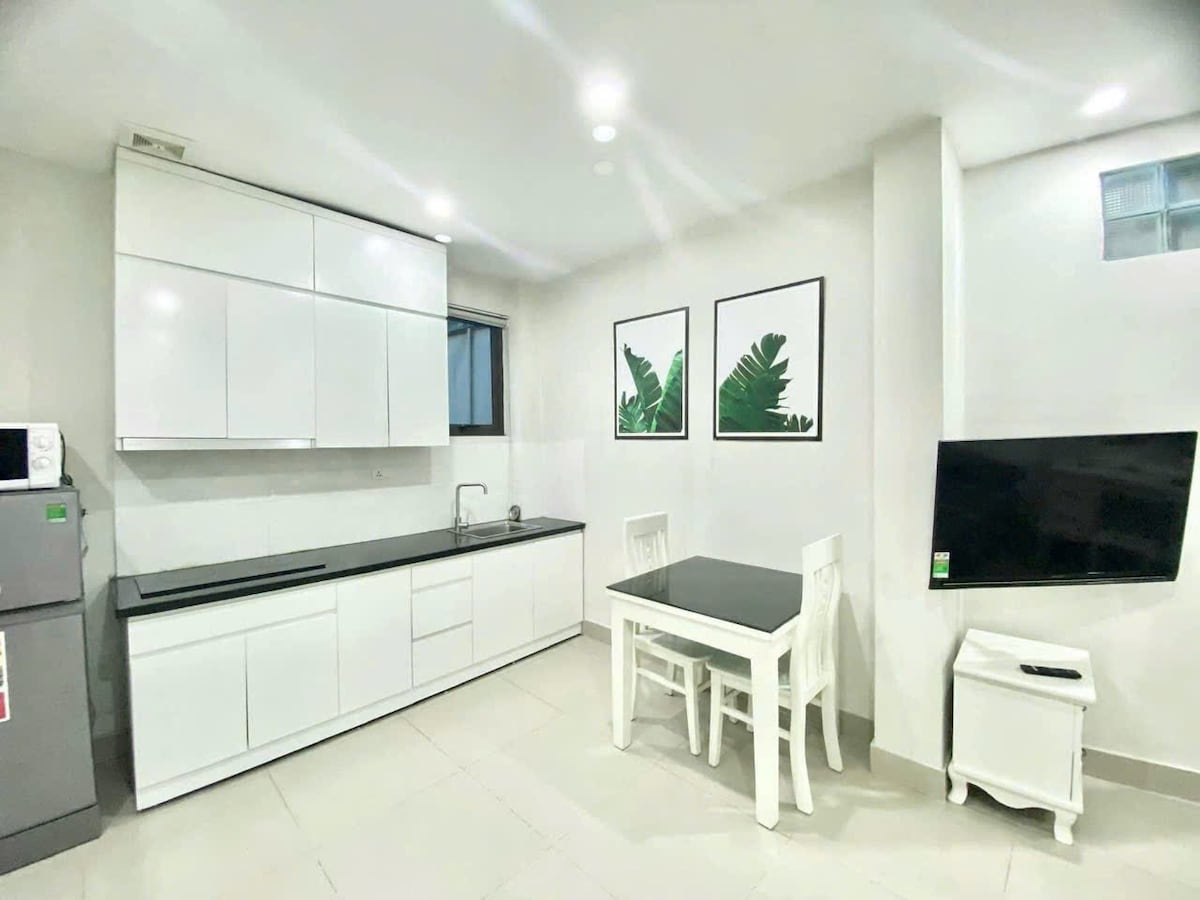 This beautiful apartment in Tay Ho is located on the 6th floor of our new building - Hanoi Housing 32. It has one bedroom, one bathroom, and an open livingroom-kitchen. It is nicely designed. Full modern furniture and equipment is provided. The wooden floor helps the apartment easy to clean. Moreover, the building's location is within walking distance to convenience stores, restaurants, shops, bars, pubs. Please note that there is no natural light or balcony at the apartment