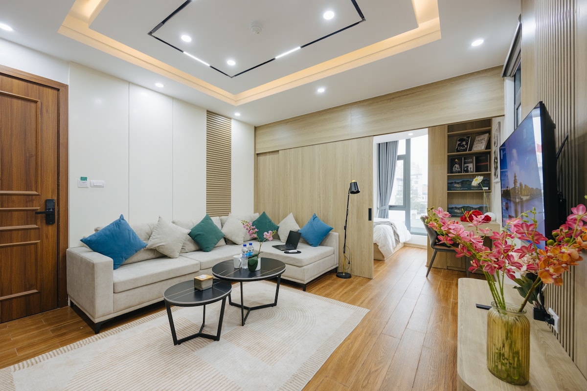 🌟 Japandi Minimalist Apartment 🌟 🎉 Special Offer: Enjoy up to 25% off on monthly rentals! Don’t miss this fantastic opportunity for a stylish and affordable living experience! 🏡✨ This beautifully designed apartment offers a serene and cozy living space with a Japandi Minimalist style. Located near Lotte Mall and West Lake, it’s the perfect blend of convenience and comfort. The apartment includes a comfortable sofa bed, a soft bed, and a fully-equipped kitchen.