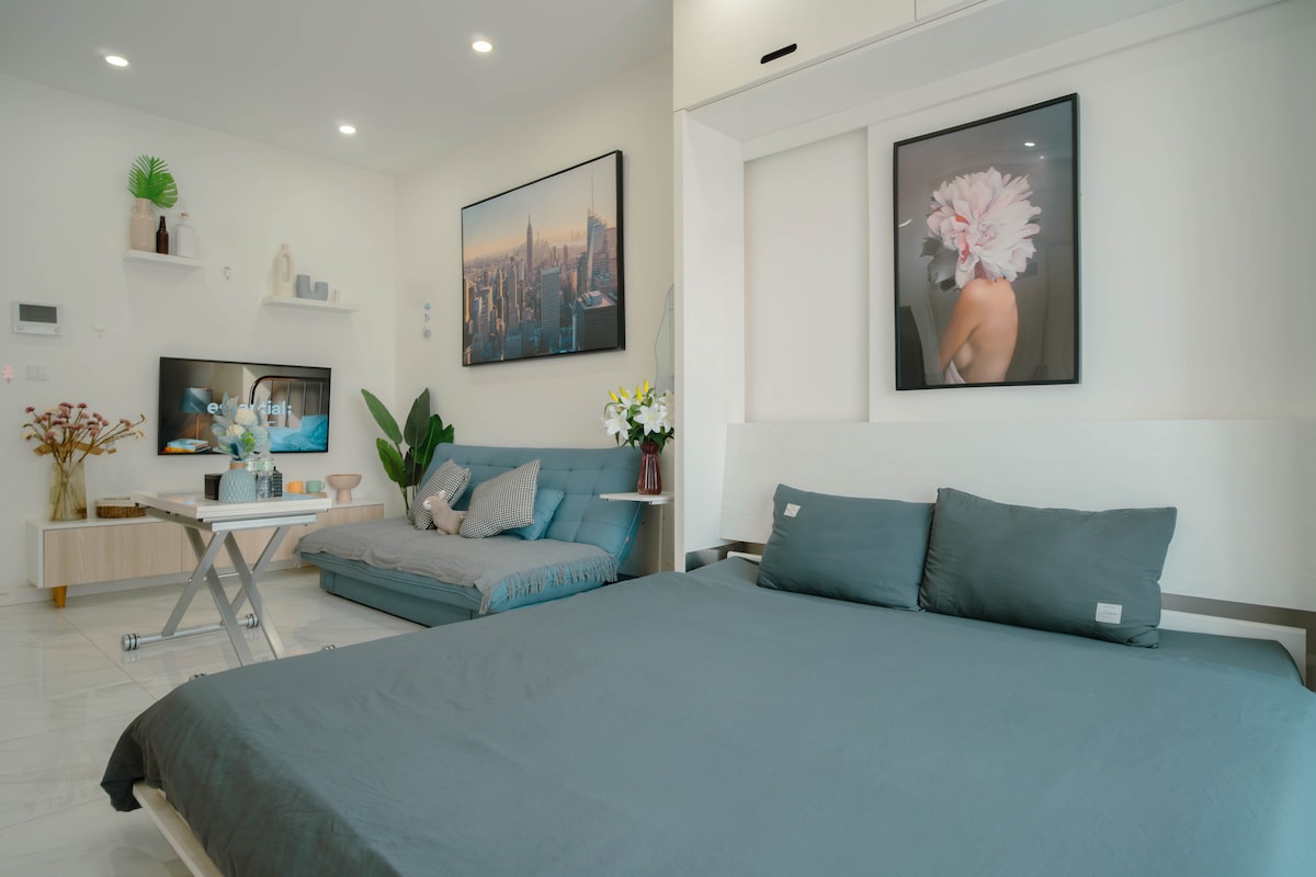 Chill out and relax in this serene, minimalist retreat nestled in the heart of Tây Hồ! Inspired by Scandinavian design, this cozy 1-bedroom apartment offers a calm oasis with clean lines, warm textures, and natural light. Perfect for digital nomads, couples, or solo travelers seeking a hygge vibe, it’s just steps from Westlake’s. Unwind in a cozy bedroom with a comfy double bed. Relax on a plush sofa bed in the airy living room. Modern kitchen.